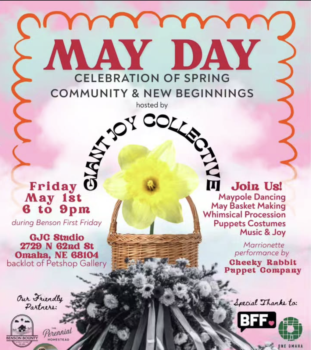 May Day in the Benson Creative District, presented by Giant Joy Collective, is a free, all-ages celebration featuring artmaking, maypole dancing, a puppet performance, and a community procession to welcome spring.