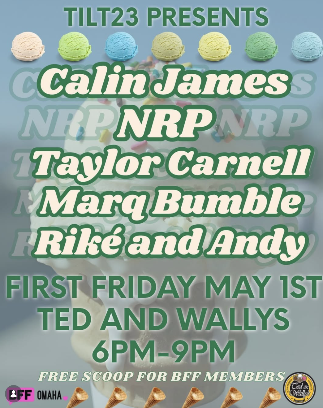Tilt23 presents a First Friday lineup at Ted & Wally’s featuring live music from Calin James, NRP, Taylor Carnell, Marq Bumble, and Rilé and Andy, plus free scoops for BFF members.